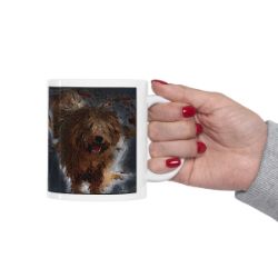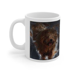 Keep cozy and warm with a nice cuppa, featuring the beloved Komondor dog breed stylized in our Coloromo Rock Candy art on a ceramic mug. Lead and BPA-free, these durable mugs are also microwave & dishwasher-safe. Made of white, resilient ceramic in an 11-ounce size, this is the perfect gift for coffee, tea, and hot chocolate lovers.