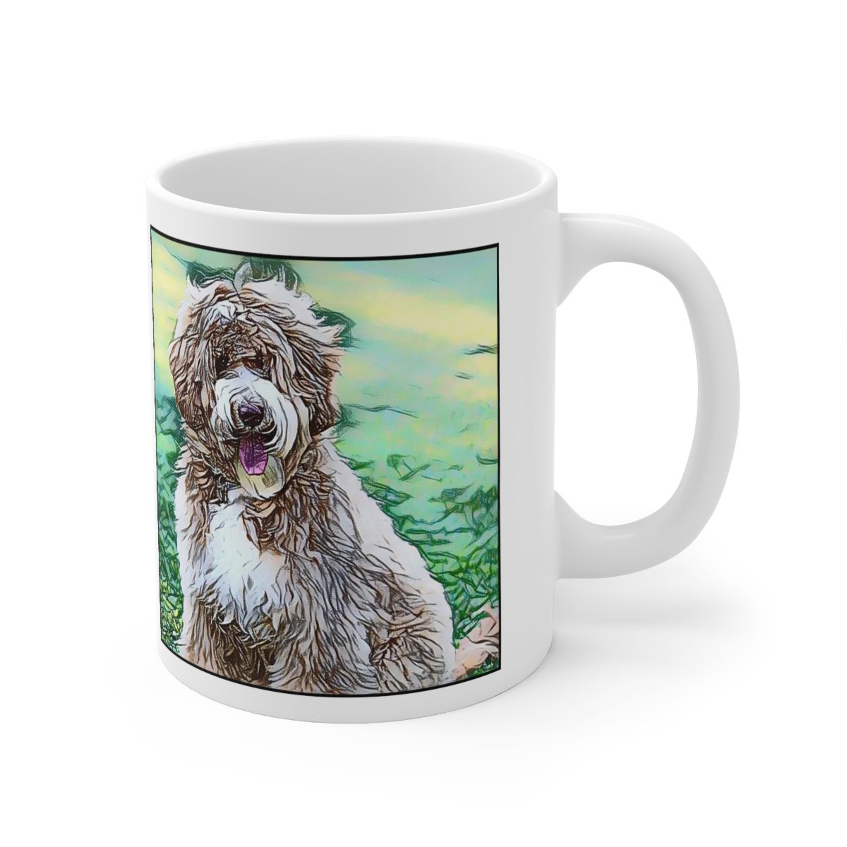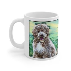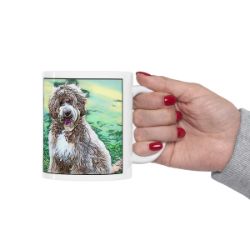 Keep cozy and warm with a nice cuppa, featuring the beloved Labradoodle dog breed stylized in our Coloromo Penciled In art on a ceramic mug. Lead and BPA-free, these durable mugs are also microwave & dishwasher-safe. Made of white, resilient ceramic in an 11-ounce size, this is the perfect gift for coffee, tea, and hot chocolate lovers.
