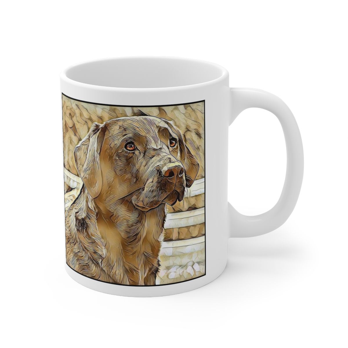 Keep cozy and warm with a nice cuppa, featuring the beloved Labrador Retriever dog breed stylized in our Coloromo Hairy Styles art on a ceramic mug. Lead and BPA-free, these durable mugs are also microwave & dishwasher-safe. Made of white, resilient ceramic in an 11-ounce size, this is the perfect gift for coffee, tea, and hot chocolate lovers.