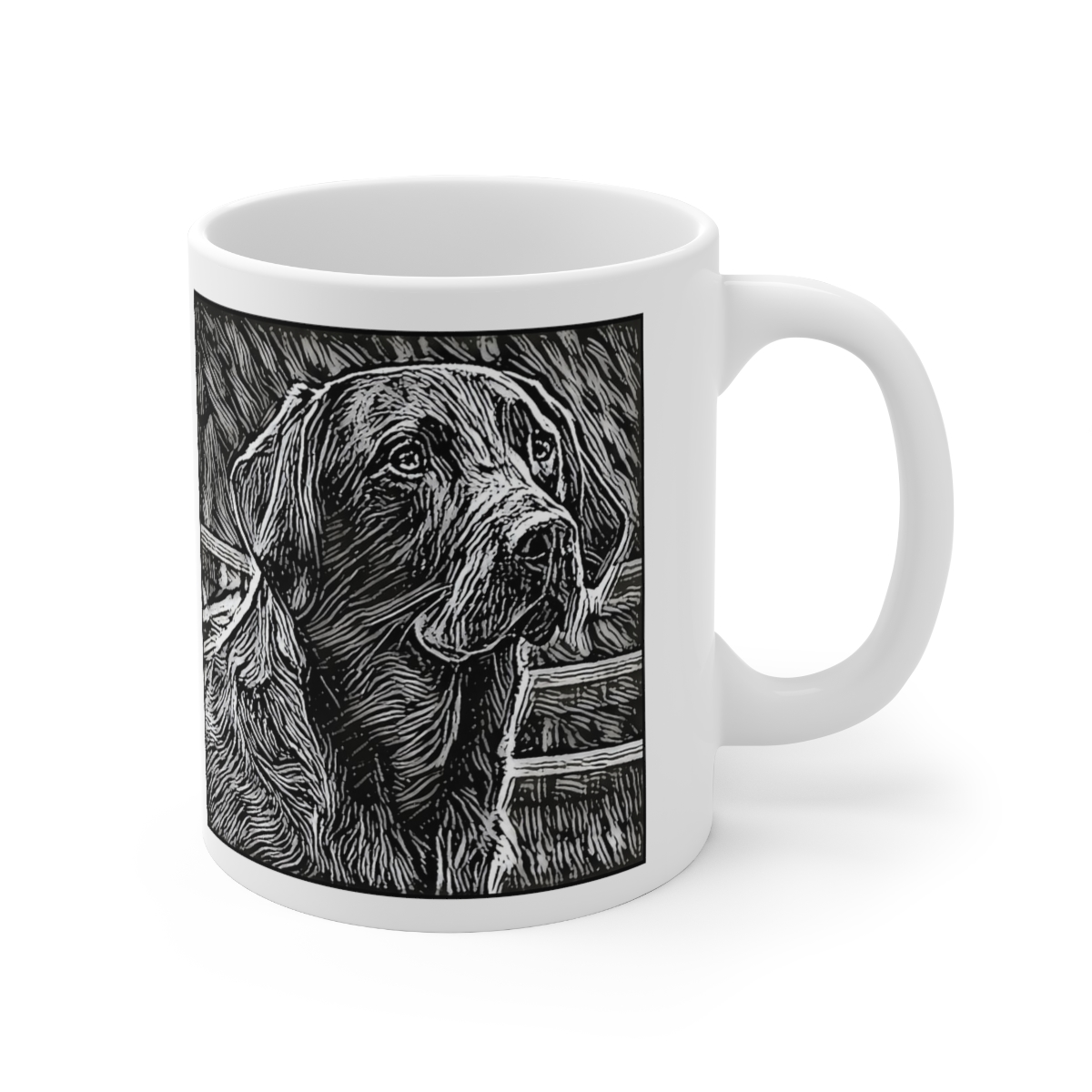Keep cozy and warm with a nice cuppa, featuring the beloved Labrador Retriever dog breed stylized in our Coloromo Licorice Lines art on a ceramic mug. Lead and BPA-free, these durable mugs are also microwave & dishwasher-safe. Made of white, resilient ceramic in an 11-ounce size, this is the perfect gift for coffee, tea, and hot chocolate lovers.