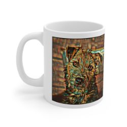 Keep cozy and warm with a nice cuppa, featuring the beloved Lakeland Terrier dog breed stylized in our Coloromo Cool Cubist art on a ceramic mug. Lead and BPA-free, these durable mugs are also microwave & dishwasher-safe. Made of white, resilient ceramic in an 11-ounce size, this is the perfect gift for coffee, tea, and hot chocolate lovers.