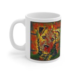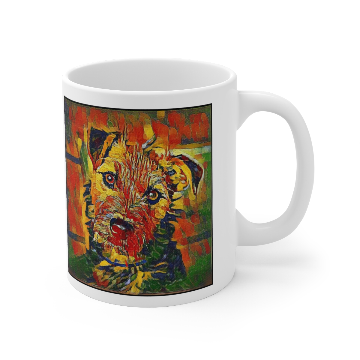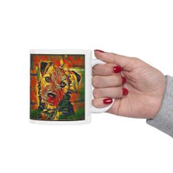 Keep cozy and warm with a nice cuppa, featuring the beloved Lakeland Terrier dog breed stylized in our Coloromo Garden Veggie art on a ceramic mug. Lead and BPA-free, these durable mugs are also microwave & dishwasher-safe. Made of white, resilient ceramic in an 11-ounce size, this is the perfect gift for coffee, tea, and hot chocolate lovers.
