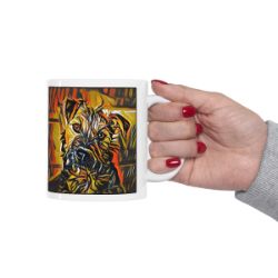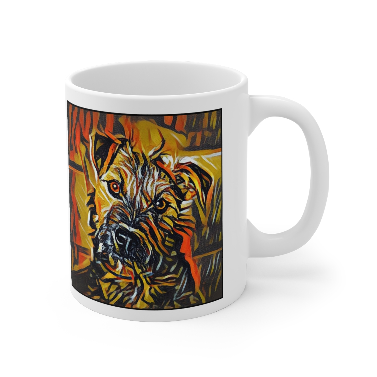 Keep cozy and warm with a nice cuppa, featuring the beloved Lakeland Terrier dog breed stylized in our Coloromo Graffiti Haus art on a ceramic mug. Lead and BPA-free, these durable mugs are also microwave & dishwasher-safe. Made of white, resilient ceramic in an 11-ounce size, this is the perfect gift for coffee, tea, and hot chocolate lovers.