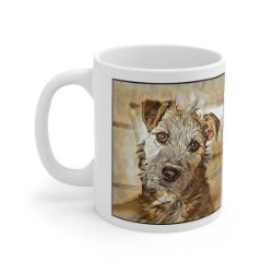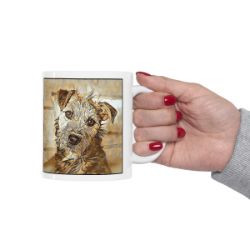 Keep cozy and warm with a nice cuppa, featuring the beloved Lakeland Terrier dog breed stylized in our Coloromo Hairy Styles art on a ceramic mug. Lead and BPA-free, these durable mugs are also microwave & dishwasher-safe. Made of white, resilient ceramic in an 11-ounce size, this is the perfect gift for coffee, tea, and hot chocolate lovers.