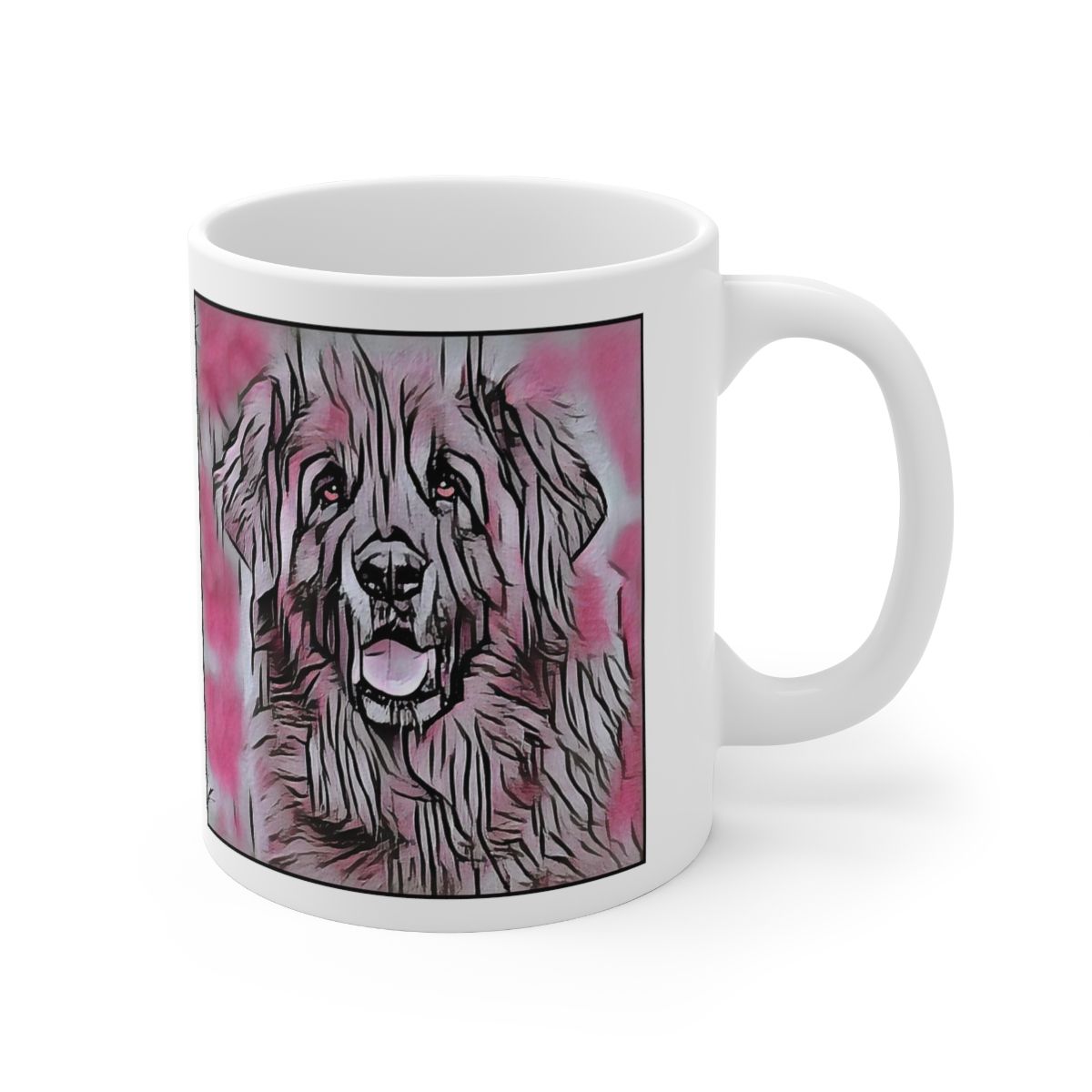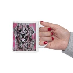 Keep cozy and warm with a nice cuppa, featuring the beloved Leonberger dog breed stylized in our Coloromo Comic Pink art on a ceramic mug. Lead and BPA-free, these durable mugs are also microwave & dishwasher-safe. Made of white, resilient ceramic in an 11-ounce size, this is the perfect gift for coffee, tea, and hot chocolate lovers.