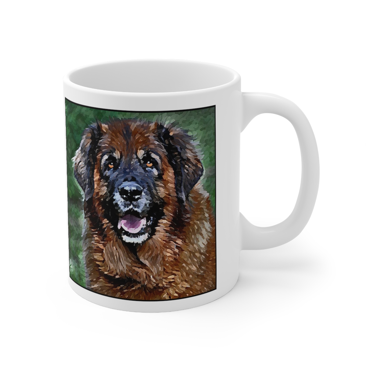 Keep cozy and warm with a nice cuppa, featuring the beloved Leonberger dog breed stylized in our Coloromo Lord Lil Bit art on a ceramic mug. Lead and BPA-free, these durable mugs are also microwave & dishwasher-safe. Made of white, resilient ceramic in an 11-ounce size, this is the perfect gift for coffee, tea, and hot chocolate lovers.