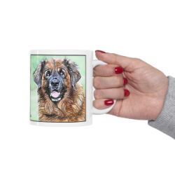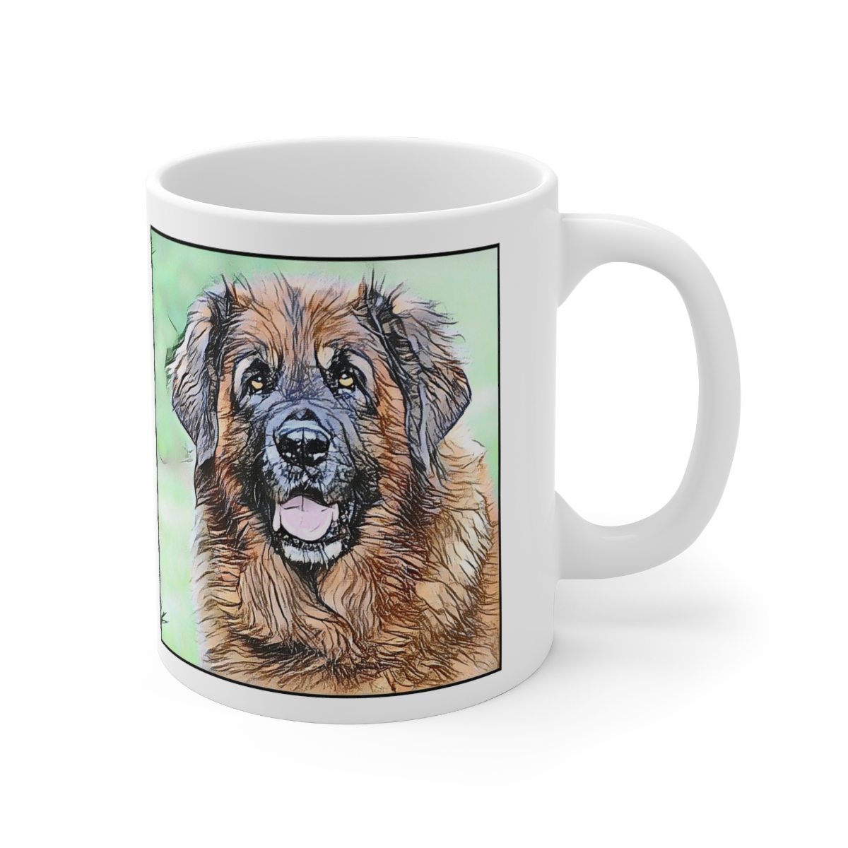 Keep cozy and warm with a nice cuppa, featuring the beloved Leonberger dog breed stylized in our Coloromo Penciled In art on a ceramic mug. Lead and BPA-free, these durable mugs are also microwave & dishwasher-safe. Made of white, resilient ceramic in an 11-ounce size, this is the perfect gift for coffee, tea, and hot chocolate lovers.
