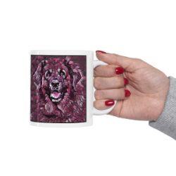 Keep cozy and warm with a nice cuppa, featuring the beloved Leonberger dog breed stylized in our Coloromo Plump Wine art on a ceramic mug. Lead and BPA-free, these durable mugs are also microwave & dishwasher-safe. Made of white, resilient ceramic in an 11-ounce size, this is the perfect gift for coffee, tea, and hot chocolate lovers.