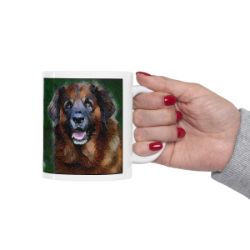 Keep cozy and warm with a nice cuppa, featuring the beloved Leonberger dog breed stylized in our Coloromo Rock Candy art on a ceramic mug. Lead and BPA-free, these durable mugs are also microwave & dishwasher-safe. Made of white, resilient ceramic in an 11-ounce size, this is the perfect gift for coffee, tea, and hot chocolate lovers.