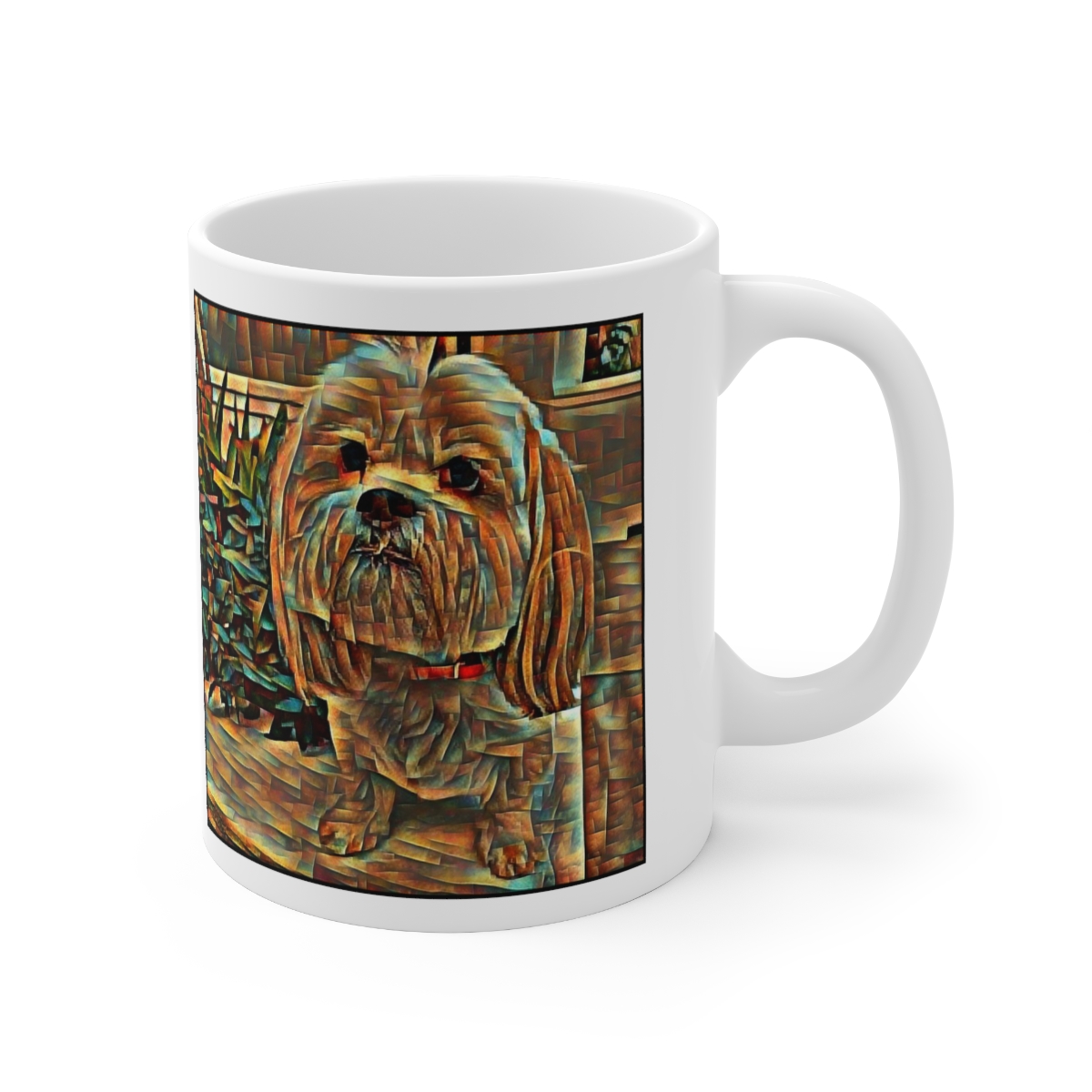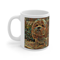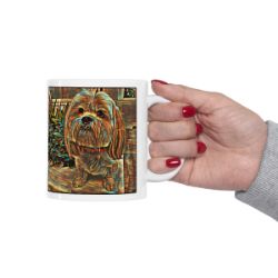 Keep cozy and warm with a nice cuppa, featuring the beloved Lhasa Apso dog breed stylized in our Coloromo Cool Cubist art on a ceramic mug. Lead and BPA-free, these durable mugs are also microwave & dishwasher-safe. Made of white, resilient ceramic in an 11-ounce size, this is the perfect gift for coffee, tea, and hot chocolate lovers.