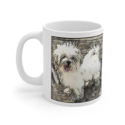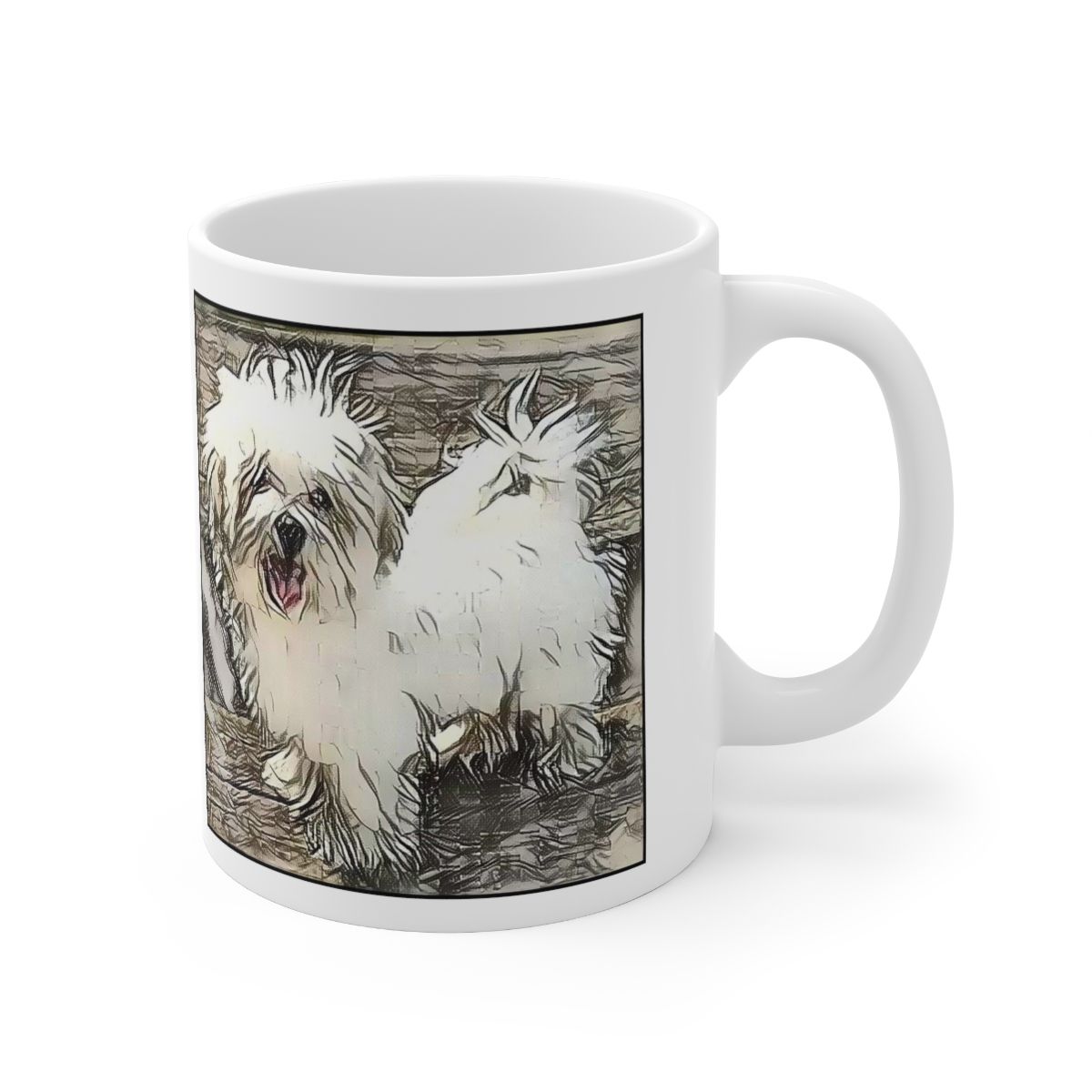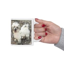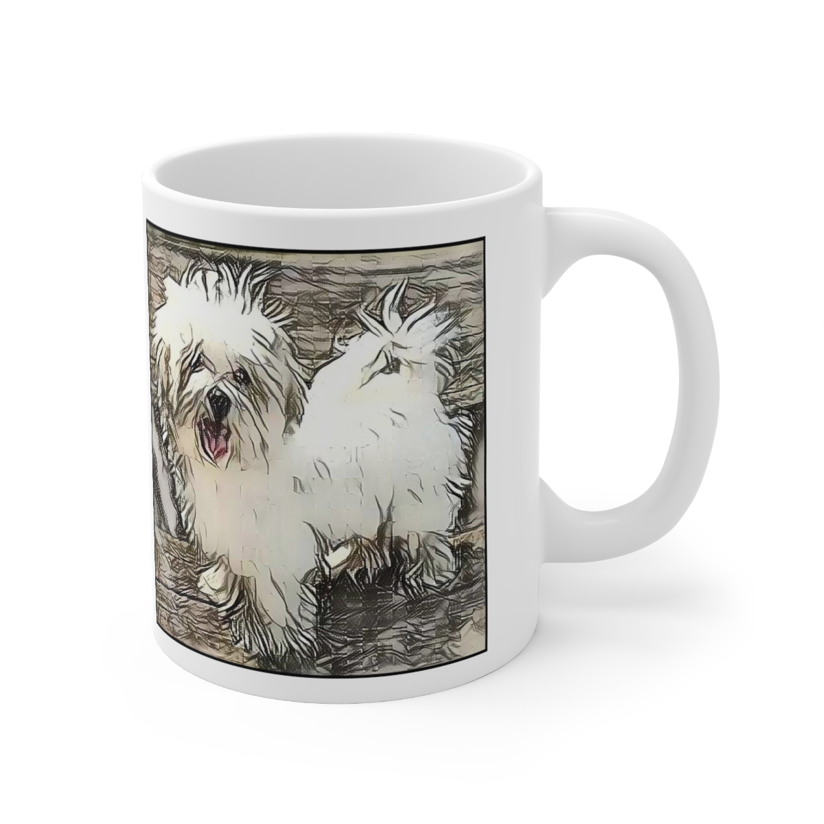 Keep cozy and warm with a nice cuppa, featuring the beloved Maltese dog breed stylized in our Coloromo Penciled In art on a ceramic mug. Lead and BPA-free, these durable mugs are also microwave & dishwasher-safe. Made of white, resilient ceramic in an 11-ounce size, this is the perfect gift for coffee, tea, and hot chocolate lovers.
