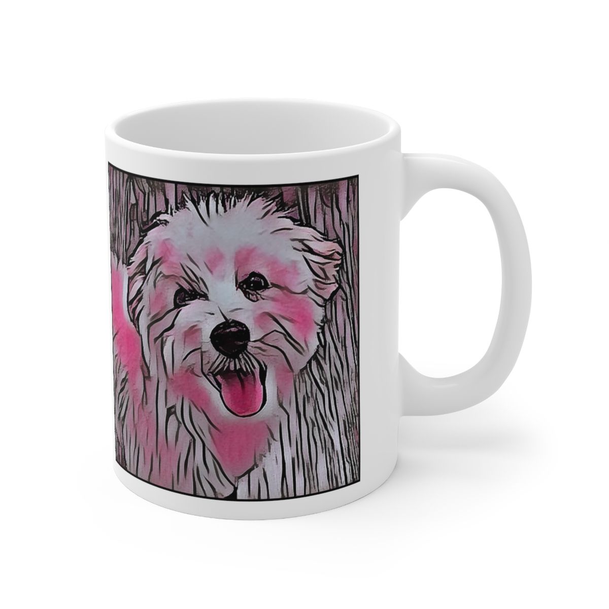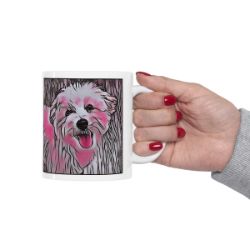 Keep cozy and warm with a nice cuppa, featuring the beloved Maltipoo dog breed stylized in our Coloromo Comic Pink art on a ceramic mug. Lead and BPA-free, these durable mugs are also microwave & dishwasher-safe. Made of white, resilient ceramic in an 11-ounce size, this is the perfect gift for coffee, tea, and hot chocolate lovers.