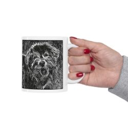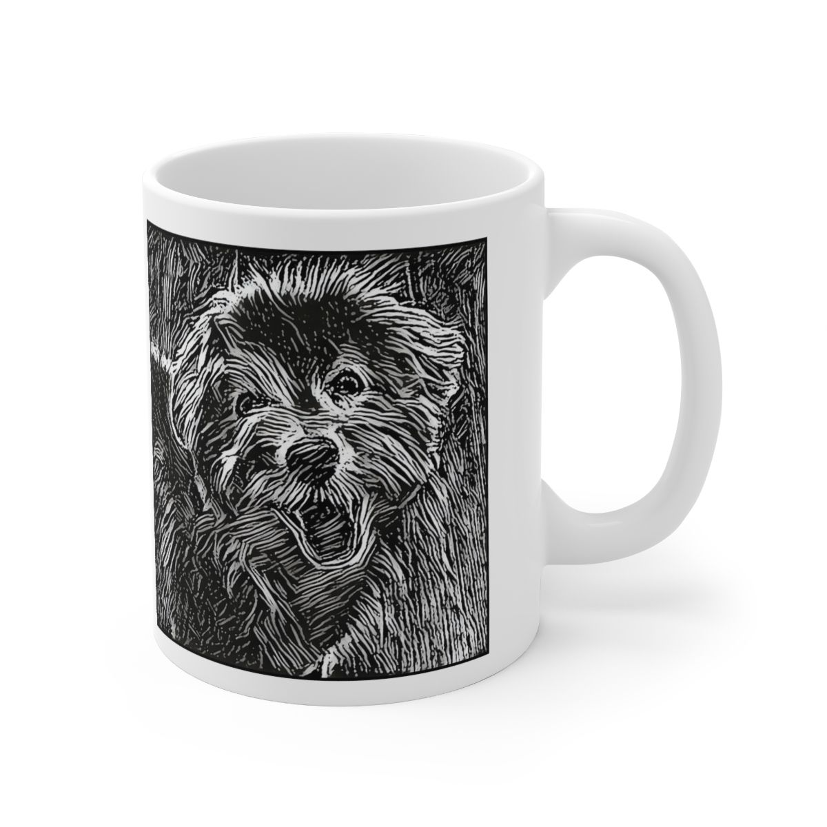 Keep cozy and warm with a nice cuppa, featuring the beloved Maltipoo dog breed stylized in our Coloromo Licorice Lines art on a ceramic mug. Lead and BPA-free, these durable mugs are also microwave & dishwasher-safe. Made of white, resilient ceramic in an 11-ounce size, this is the perfect gift for coffee, tea, and hot chocolate lovers.