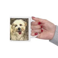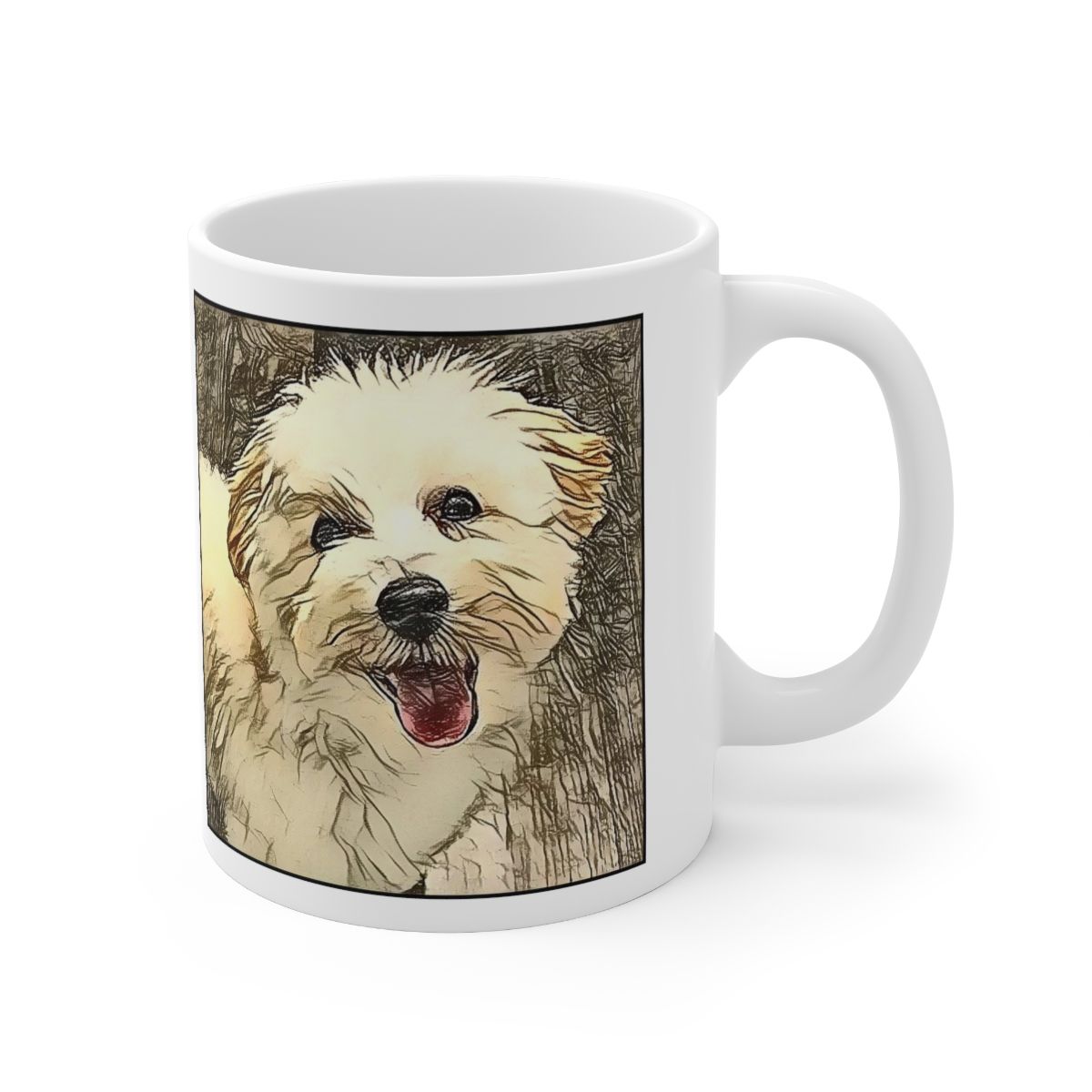 Keep cozy and warm with a nice cuppa, featuring the beloved Maltipoo dog breed stylized in our Coloromo Penciled In art on a ceramic mug. Lead and BPA-free, these durable mugs are also microwave & dishwasher-safe. Made of white, resilient ceramic in an 11-ounce size, this is the perfect gift for coffee, tea, and hot chocolate lovers.