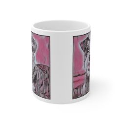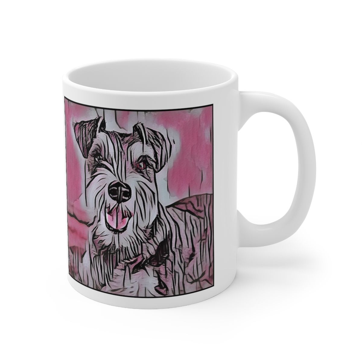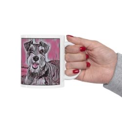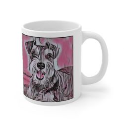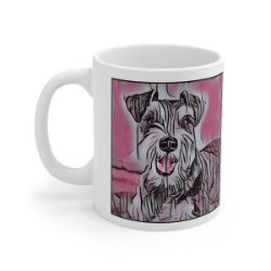 Keep cozy and warm with a nice cuppa, featuring the beloved Miniature Schnauzer dog breed stylized in our Coloromo Comic Pink art on a ceramic mug. Lead and BPA-free, these durable mugs are also microwave & dishwasher-safe. Made of white, resilient ceramic in an 11-ounce size, this is the perfect gift for coffee, tea, and hot chocolate lovers.