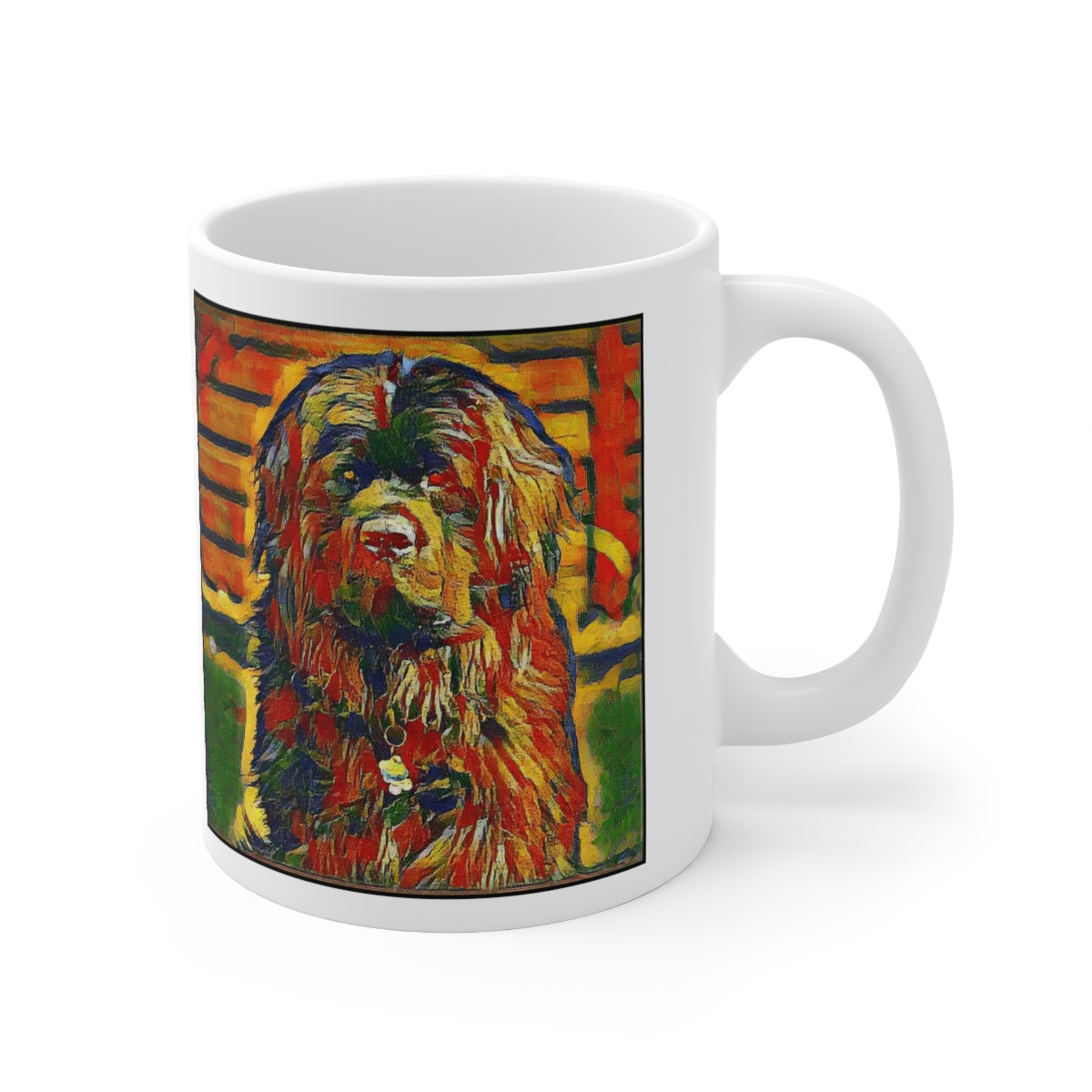 Keep cozy and warm with a nice cuppa, featuring the beloved Newfoundland dog breed stylized in our Coloromo Garden Veggie art on a ceramic mug. Lead and BPA-free, these durable mugs are also microwave & dishwasher-safe. Made of white, resilient ceramic in an 11-ounce size, this is the perfect gift for coffee, tea, and hot chocolate lovers.