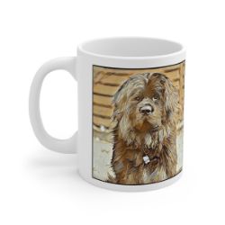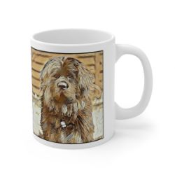 Keep cozy and warm with a nice cuppa, featuring the beloved Newfoundland dog breed stylized in our Coloromo Hairy Styles art on a ceramic mug. Lead and BPA-free, these durable mugs are also microwave & dishwasher-safe. Made of white, resilient ceramic in an 11-ounce size, this is the perfect gift for coffee, tea, and hot chocolate lovers.