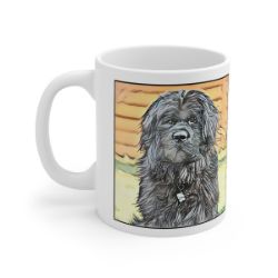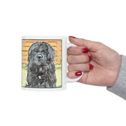 Keep cozy and warm with a nice cuppa, featuring the beloved Newfoundland dog breed stylized in our Coloromo Penciled In art on a ceramic mug. Lead and BPA-free, these durable mugs are also microwave & dishwasher-safe. Made of white, resilient ceramic in an 11-ounce size, this is the perfect gift for coffee, tea, and hot chocolate lovers.