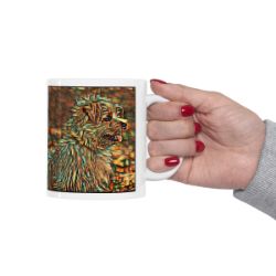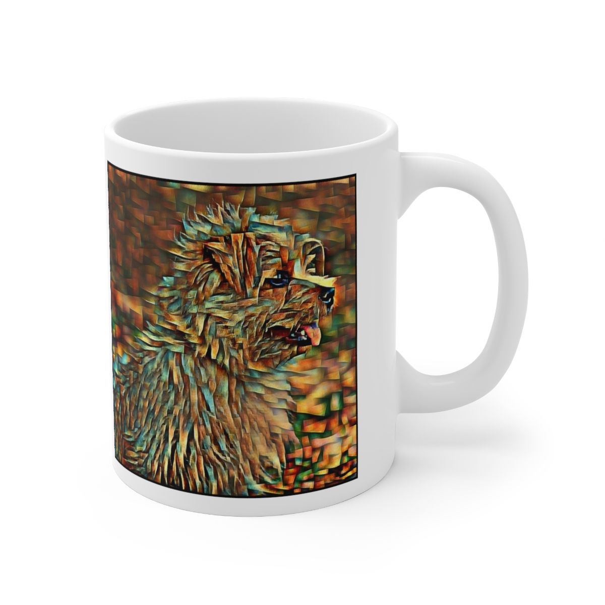Keep cozy and warm with a nice cuppa, featuring the beloved Norfolk Terrier dog breed stylized in our Coloromo Cool Cubist art on a ceramic mug. Lead and BPA-free, these durable mugs are also microwave & dishwasher-safe. Made of white, resilient ceramic in an 11-ounce size, this is the perfect gift for coffee, tea, and hot chocolate lovers.