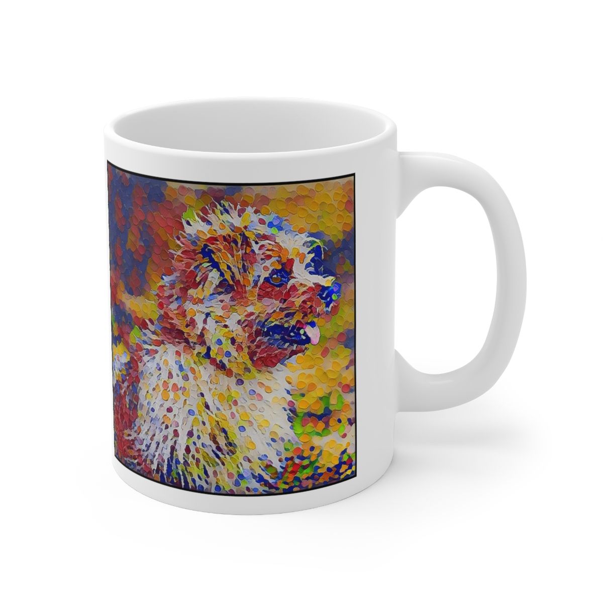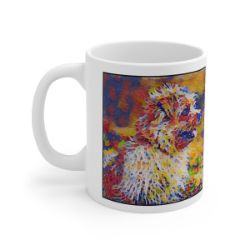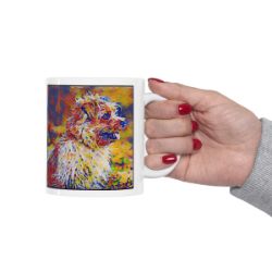 Keep cozy and warm with a nice cuppa, featuring the beloved Norfolk Terrier dog breed stylized in our Coloromo Party Confetti art on a ceramic mug. Lead and BPA-free, these durable mugs are also microwave & dishwasher-safe. Made of white, resilient ceramic in an 11-ounce size, this is the perfect gift for coffee, tea, and hot chocolate lovers.