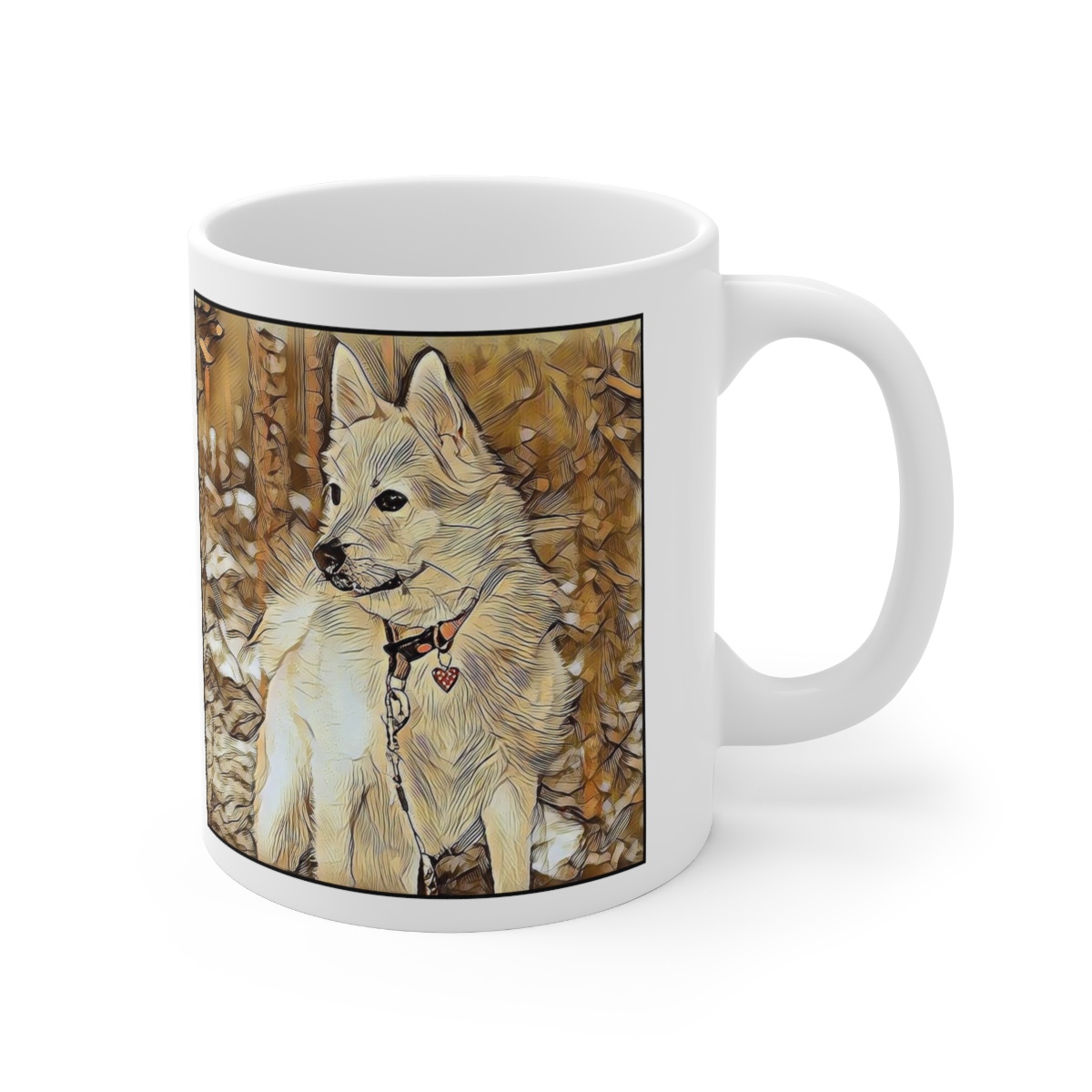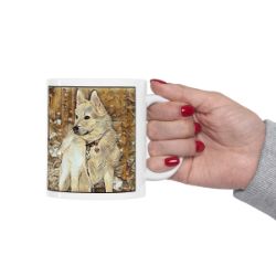 Keep cozy and warm with a nice cuppa, featuring the beloved Norwegian Buhund dog breed stylized in our Coloromo Hairy Styles art on a ceramic mug. Lead and BPA-free, these durable mugs are also microwave & dishwasher-safe. Made of white, resilient ceramic in an 11-ounce size, this is the perfect gift for coffee, tea, and hot chocolate lovers.