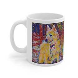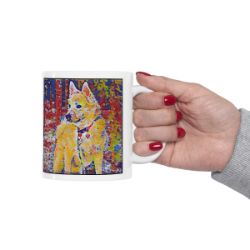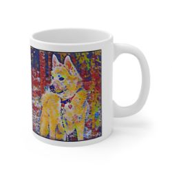 Keep cozy and warm with a nice cuppa, featuring the beloved Norwegian Buhund dog breed stylized in our Coloromo Party Confetti art on a ceramic mug. Lead and BPA-free, these durable mugs are also microwave & dishwasher-safe. Made of white, resilient ceramic in an 11-ounce size, this is the perfect gift for coffee, tea, and hot chocolate lovers.