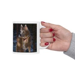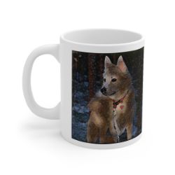 Keep cozy and warm with a nice cuppa, featuring the beloved Norwegian Buhund dog breed stylized in our Coloromo Rock Candy art on a ceramic mug. Lead and BPA-free, these durable mugs are also microwave & dishwasher-safe. Made of white, resilient ceramic in an 11-ounce size, this is the perfect gift for coffee, tea, and hot chocolate lovers.