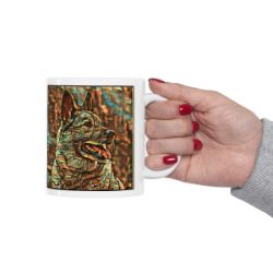 Keep cozy and warm with a nice cuppa, featuring the beloved Norwegian Elkhound dog breed stylized in our Coloromo Cool Cubist art on a ceramic mug. Lead and BPA-free, these durable mugs are also microwave & dishwasher-safe. Made of white, resilient ceramic in an 11-ounce size, this is the perfect gift for coffee, tea, and hot chocolate lovers.