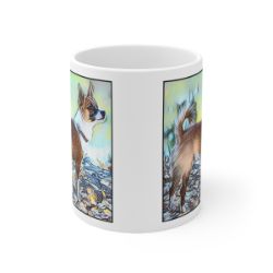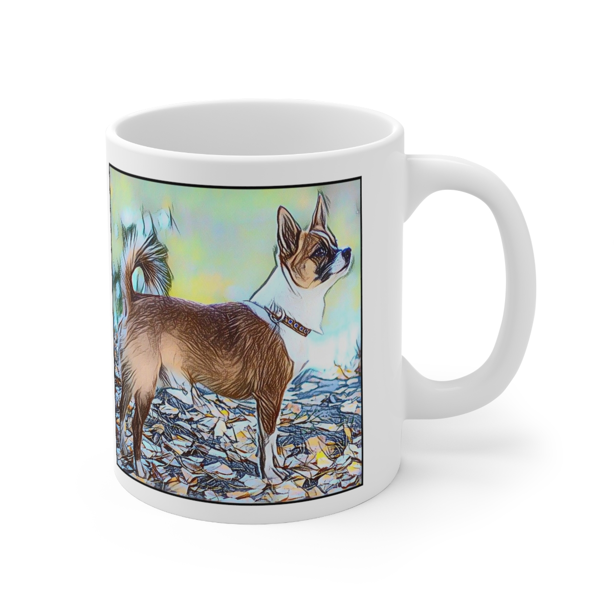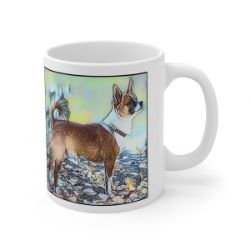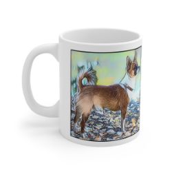 Keep cozy and warm with a nice cuppa, featuring the beloved Norwegian Lundehund dog breed stylized in our Coloromo Penciled In art on a ceramic mug. Lead and BPA-free, these durable mugs are also microwave & dishwasher-safe. Made of white, resilient ceramic in an 11-ounce size, this is the perfect gift for coffee, tea, and hot chocolate lovers.