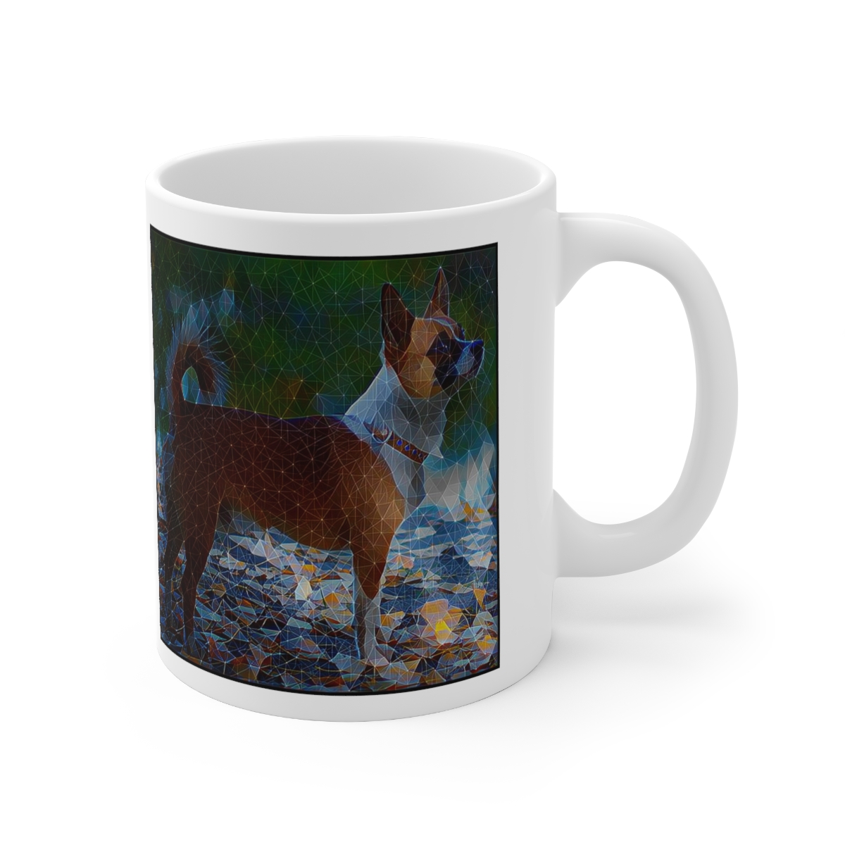 Keep cozy and warm with a nice cuppa, featuring the beloved Norwegian Lundehund dog breed stylized in our Coloromo Rock Candy art on a ceramic mug. Lead and BPA-free, these durable mugs are also microwave & dishwasher-safe. Made of white, resilient ceramic in an 11-ounce size, this is the perfect gift for coffee, tea, and hot chocolate lovers.