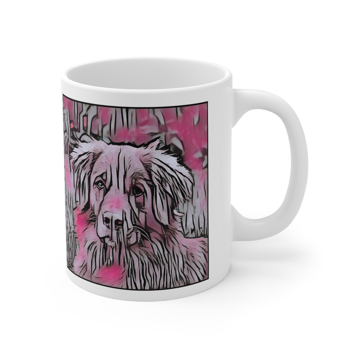 Keep cozy and warm with a nice cuppa, featuring the beloved Nova Scotia Duck Tolling Retriever dog breed stylized in our Coloromo Comic Pink art on a ceramic mug. Lead and BPA-free, these durable mugs are also microwave & dishwasher-safe. Made of white, resilient ceramic in an 11-ounce size, this is the perfect gift for coffee, tea, and hot chocolate lovers.