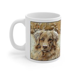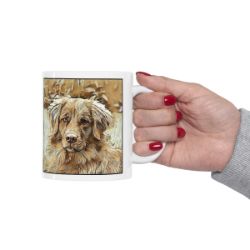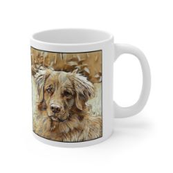 Keep cozy and warm with a nice cuppa, featuring the beloved Nova Scotia Duck Tolling Retriever dog breed stylized in our Coloromo Hairy Styles art on a ceramic mug. Lead and BPA-free, these durable mugs are also microwave & dishwasher-safe. Made of white, resilient ceramic in an 11-ounce size, this is the perfect gift for coffee, tea, and hot chocolate lovers.