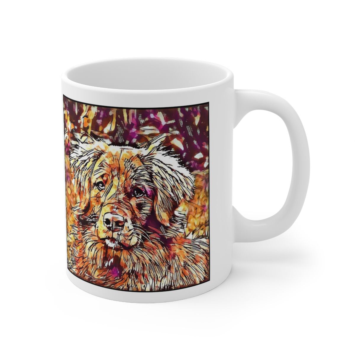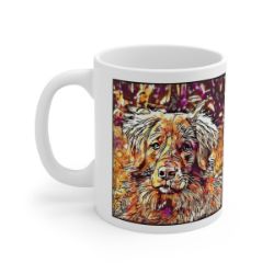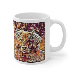 Keep cozy and warm with a nice cuppa, featuring the beloved Nova Scotia Duck Tolling Retriever dog breed stylized in our Coloromo Hipster art on a ceramic mug. Lead and BPA-free, these durable mugs are also microwave & dishwasher-safe. Made of white, resilient ceramic in an 11-ounce size, this is the perfect gift for coffee, tea, and hot chocolate lovers.