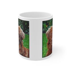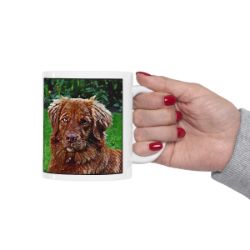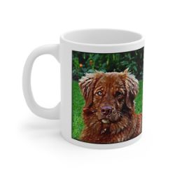 Keep cozy and warm with a nice cuppa, featuring the beloved Nova Scotia Duck Tolling Retriever dog breed stylized in our Coloromo Lord Lil Bit art on a ceramic mug. Lead and BPA-free, these durable mugs are also microwave & dishwasher-safe. Made of white, resilient ceramic in an 11-ounce size, this is the perfect gift for coffee, tea, and hot chocolate lovers.