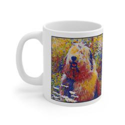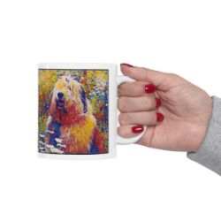 Keep cozy and warm with a nice cuppa, featuring the beloved Old English Sheepdog dog breed stylized in our Coloromo Party Confetti art on a ceramic mug. Lead and BPA-free, these durable mugs are also microwave & dishwasher-safe. Made of white, resilient ceramic in an 11-ounce size, this is the perfect gift for coffee, tea, and hot chocolate lovers.