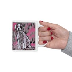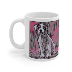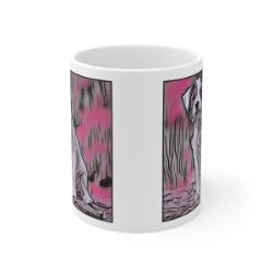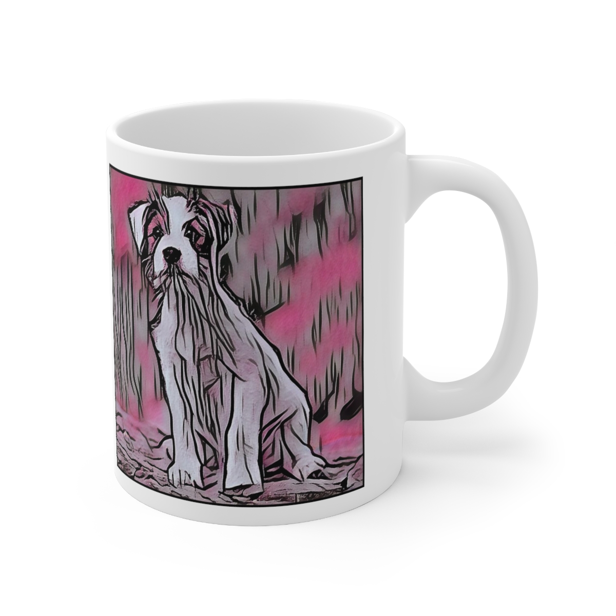 Keep cozy and warm with a nice cuppa, featuring the beloved Parson Russell Terrier dog breed stylized in our Coloromo Comic Pink art on a ceramic mug. Lead and BPA-free, these durable mugs are also microwave & dishwasher-safe. Made of white, resilient ceramic in an 11-ounce size, this is the perfect gift for coffee, tea, and hot chocolate lovers.