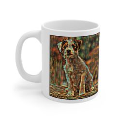 Keep cozy and warm with a nice cuppa, featuring the beloved Parson Russell Terrier dog breed stylized in our Coloromo Cool Cubist art on a ceramic mug. Lead and BPA-free, these durable mugs are also microwave & dishwasher-safe. Made of white, resilient ceramic in an 11-ounce size, this is the perfect gift for coffee, tea, and hot chocolate lovers.