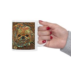 Keep cozy and warm with a nice cuppa, featuring the beloved Pekingese dog breed stylized in our Coloromo Cool Cubist art on a ceramic mug. Lead and BPA-free, these durable mugs are also microwave & dishwasher-safe. Made of white, resilient ceramic in an 11-ounce size, this is the perfect gift for coffee, tea, and hot chocolate lovers.