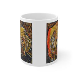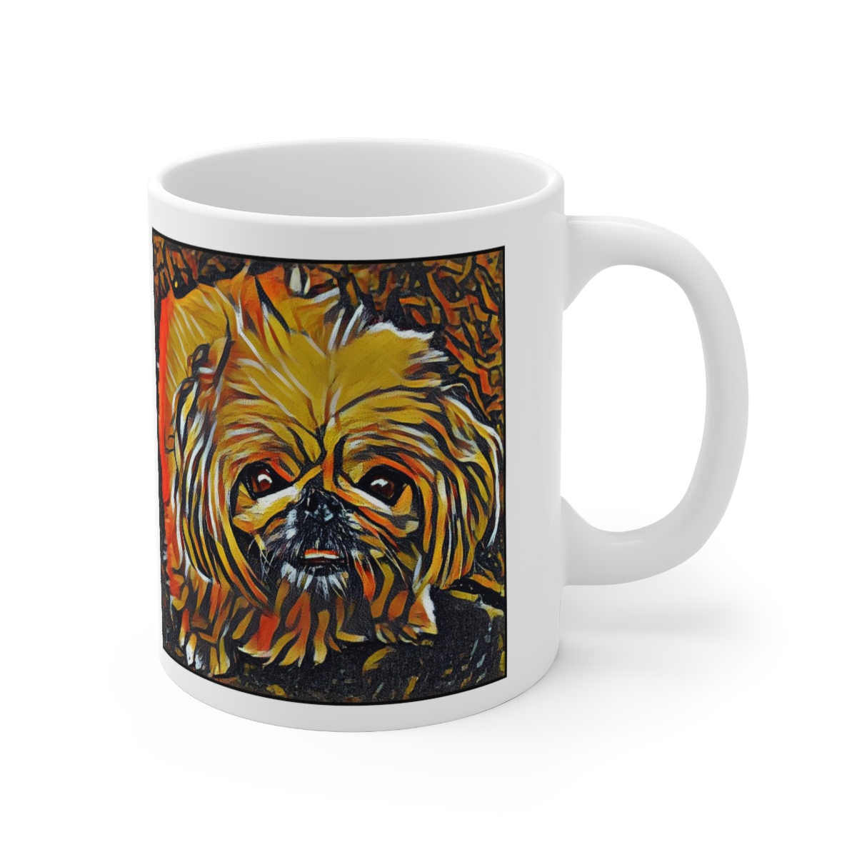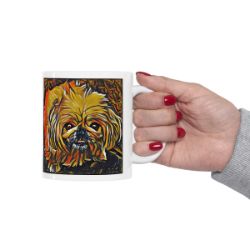 Keep cozy and warm with a nice cuppa, featuring the beloved Pekingese dog breed stylized in our Coloromo Graffiti Haus art on a ceramic mug. Lead and BPA-free, these durable mugs are also microwave & dishwasher-safe. Made of white, resilient ceramic in an 11-ounce size, this is the perfect gift for coffee, tea, and hot chocolate lovers.