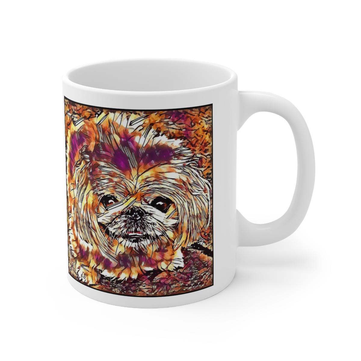 Keep cozy and warm with a nice cuppa, featuring the beloved Pekingese dog breed stylized in our Coloromo Hipster art on a ceramic mug. Lead and BPA-free, these durable mugs are also microwave & dishwasher-safe. Made of white, resilient ceramic in an 11-ounce size, this is the perfect gift for coffee, tea, and hot chocolate lovers.