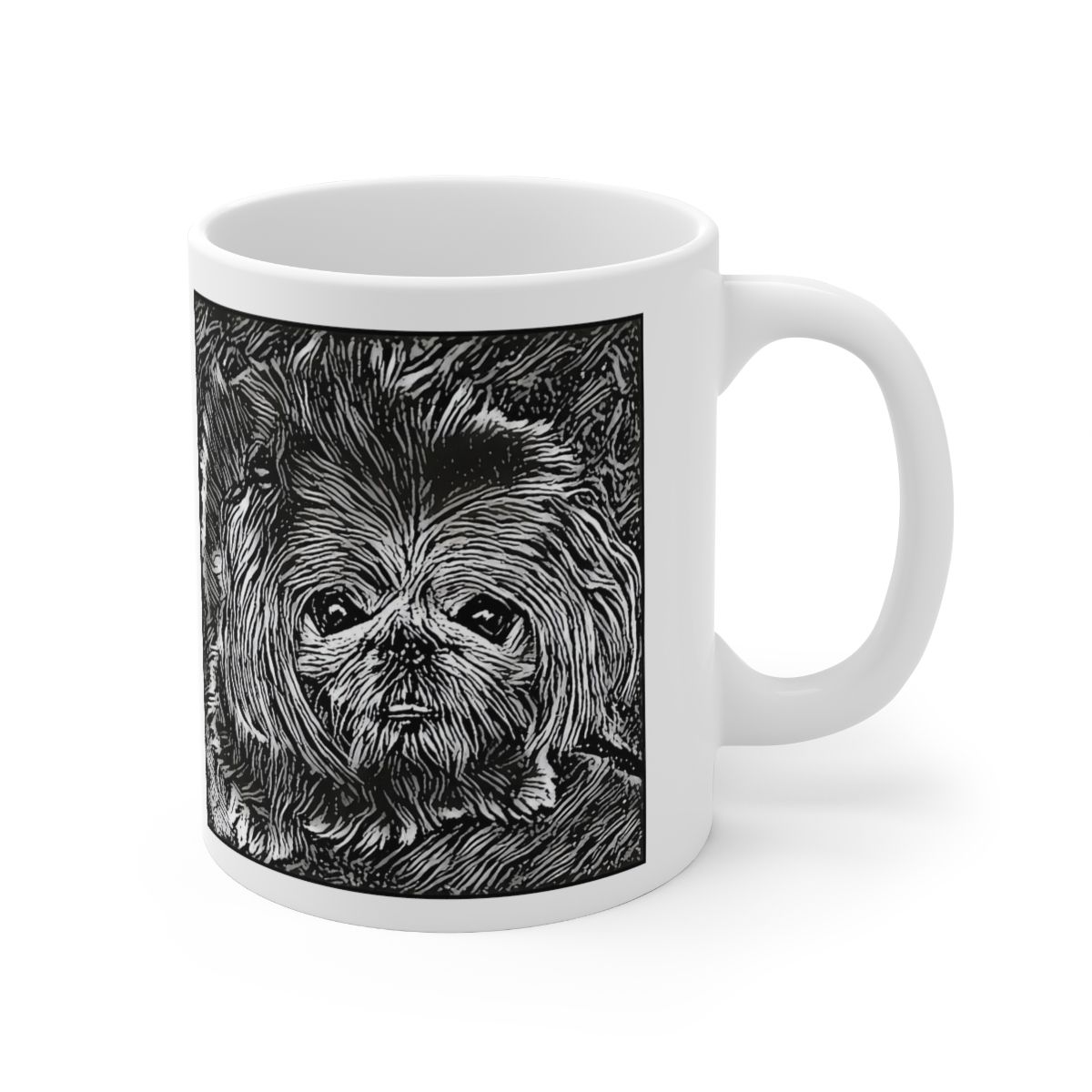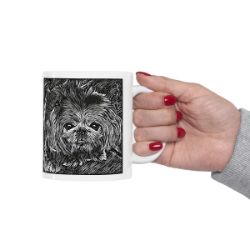 Keep cozy and warm with a nice cuppa, featuring the beloved Pekingese dog breed stylized in our Coloromo Licorice Lines art on a ceramic mug. Lead and BPA-free, these durable mugs are also microwave & dishwasher-safe. Made of white, resilient ceramic in an 11-ounce size, this is the perfect gift for coffee, tea, and hot chocolate lovers.