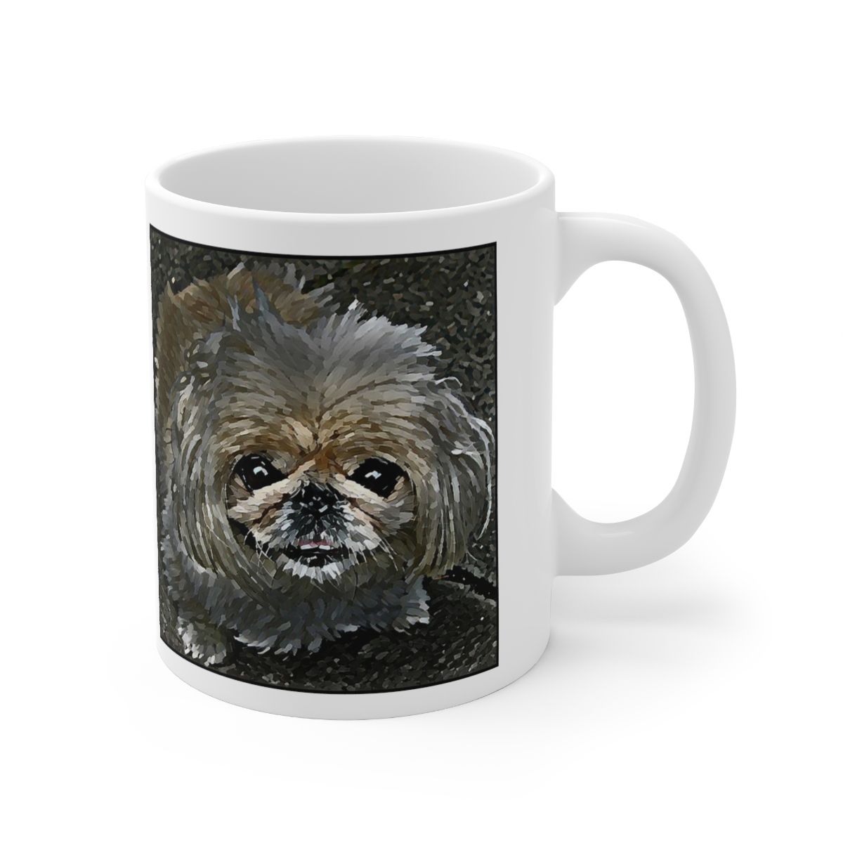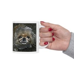 Keep cozy and warm with a nice cuppa, featuring the beloved Pekingese dog breed stylized in our Coloromo Lord Lil Bit art on a ceramic mug. Lead and BPA-free, these durable mugs are also microwave & dishwasher-safe. Made of white, resilient ceramic in an 11-ounce size, this is the perfect gift for coffee, tea, and hot chocolate lovers.