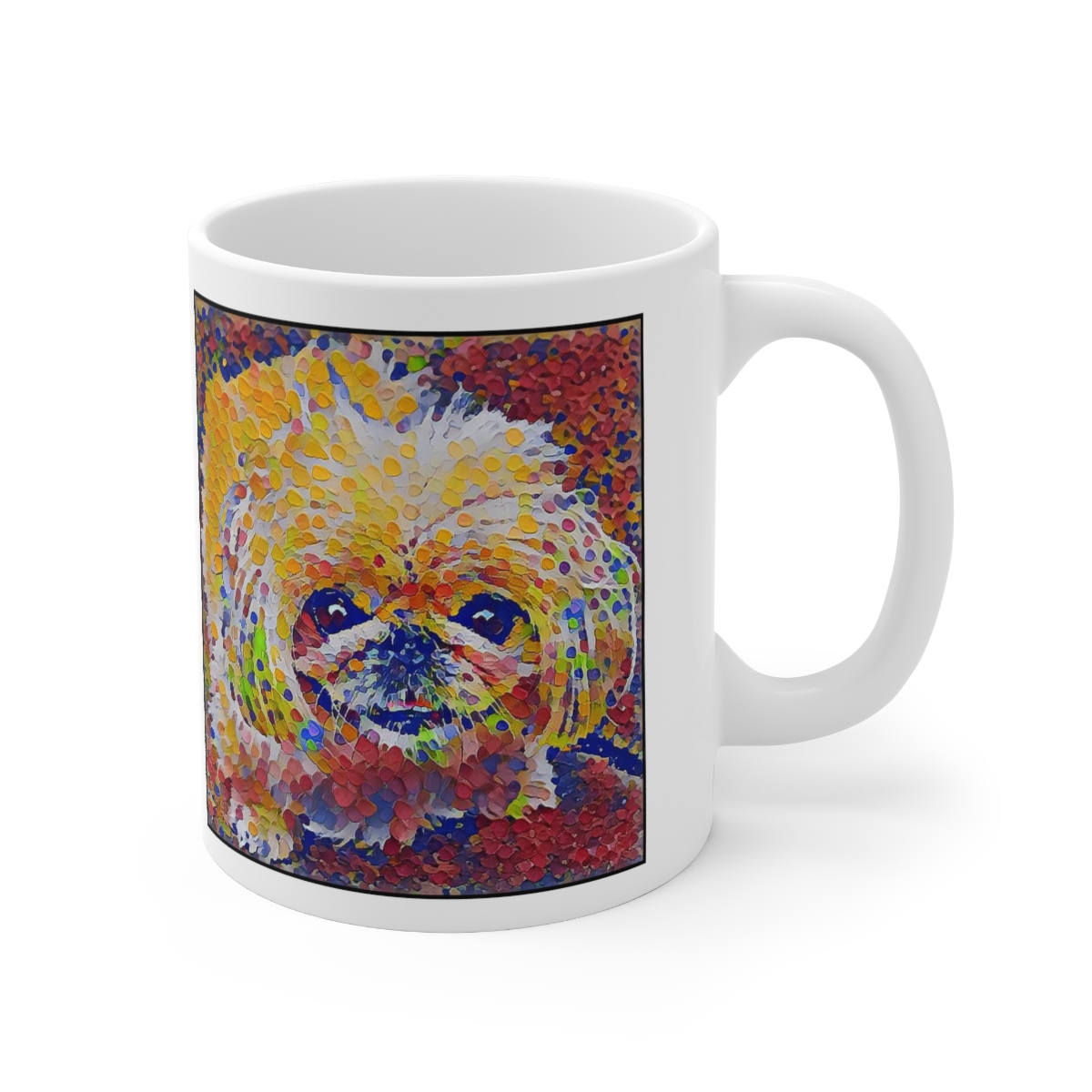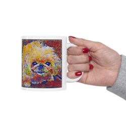 Keep cozy and warm with a nice cuppa, featuring the beloved Pekingese dog breed stylized in our Coloromo Party Confetti art on a ceramic mug. Lead and BPA-free, these durable mugs are also microwave & dishwasher-safe. Made of white, resilient ceramic in an 11-ounce size, this is the perfect gift for coffee, tea, and hot chocolate lovers.