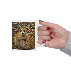 Keep cozy and warm with a nice cuppa, featuring the beloved Pembroke Welsh Corgi dog breed stylized in our Coloromo Cool Cubist art on a ceramic mug. Lead and BPA-free, these durable mugs are also microwave & dishwasher-safe. Made of white, resilient ceramic in an 11-ounce size, this is the perfect gift for coffee, tea, and hot chocolate lovers.