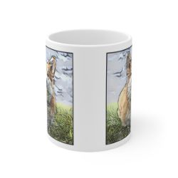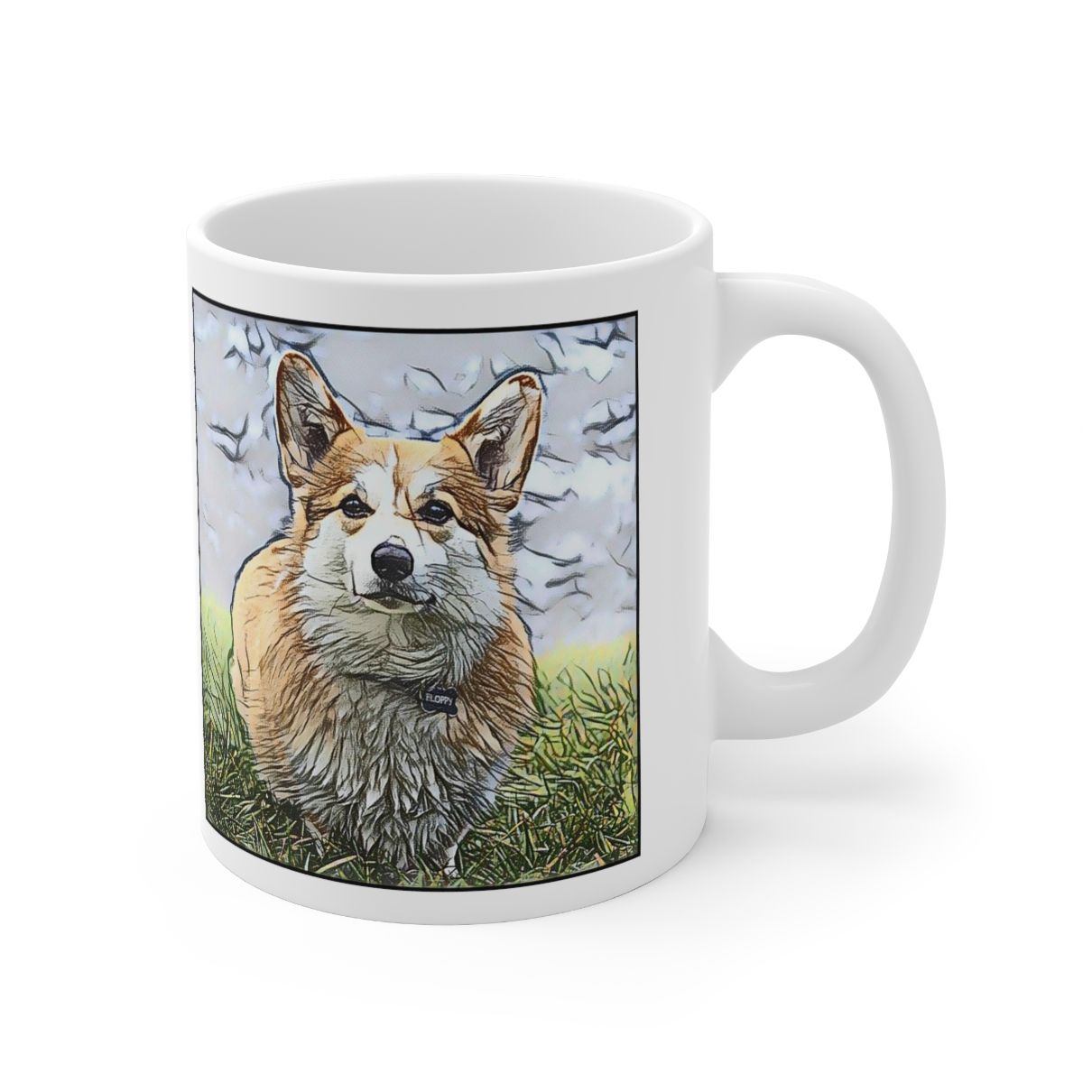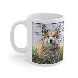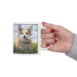 Keep cozy and warm with a nice cuppa, featuring the beloved Pembroke Welsh Corgi dog breed stylized in our Coloromo Penciled In art on a ceramic mug. Lead and BPA-free, these durable mugs are also microwave & dishwasher-safe. Made of white, resilient ceramic in an 11-ounce size, this is the perfect gift for coffee, tea, and hot chocolate lovers.
