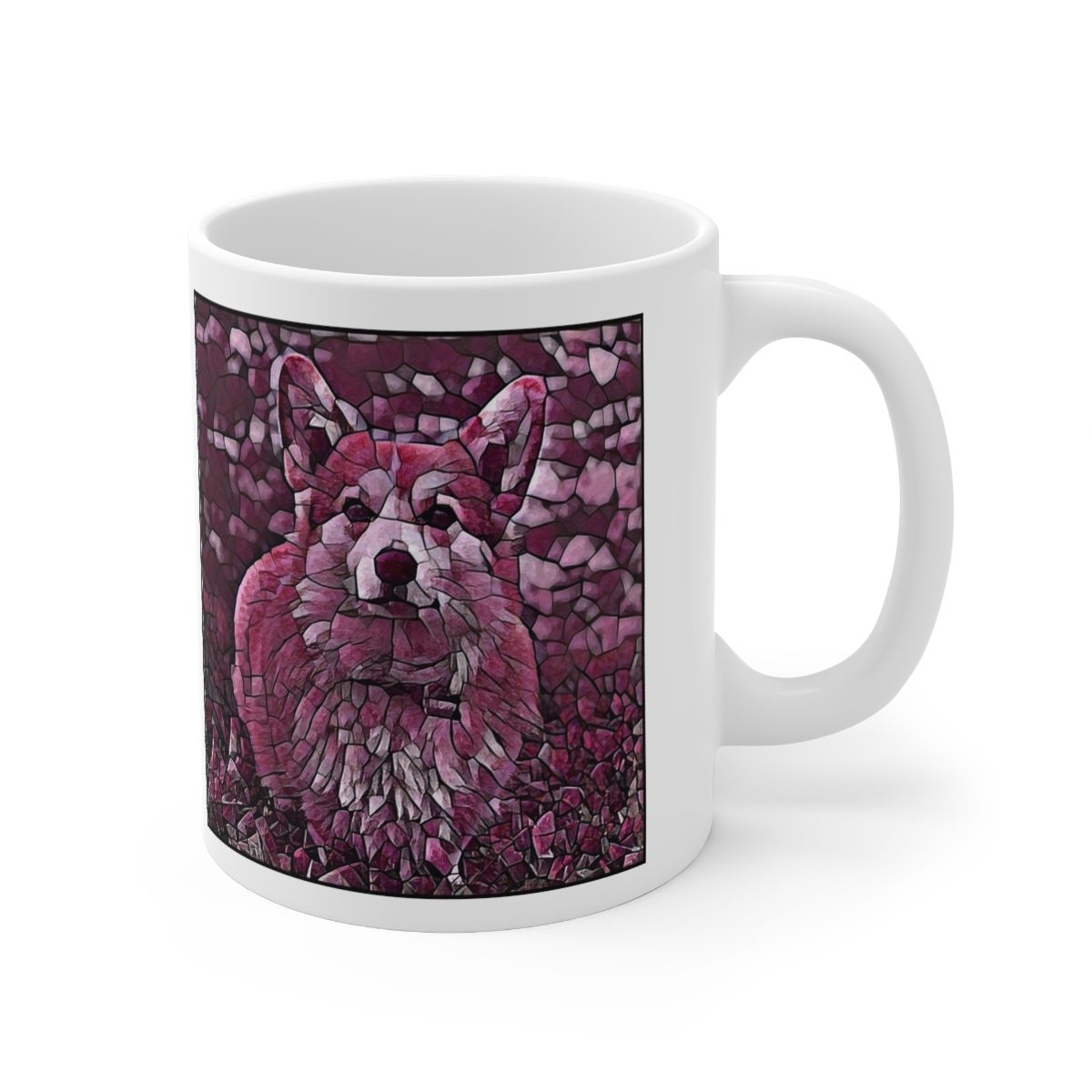 Keep cozy and warm with a nice cuppa, featuring the beloved Pembroke Welsh Corgi dog breed stylized in our Coloromo Plump Wine art on a ceramic mug. Lead and BPA-free, these durable mugs are also microwave & dishwasher-safe. Made of white, resilient ceramic in an 11-ounce size, this is the perfect gift for coffee, tea, and hot chocolate lovers.