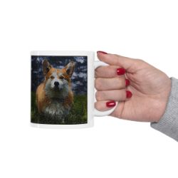 Keep cozy and warm with a nice cuppa, featuring the beloved Pembroke Welsh Corgi dog breed stylized in our Coloromo Rock Candy art on a ceramic mug. Lead and BPA-free, these durable mugs are also microwave & dishwasher-safe. Made of white, resilient ceramic in an 11-ounce size, this is the perfect gift for coffee, tea, and hot chocolate lovers.