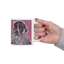 Keep cozy and warm with a nice cuppa, featuring the beloved Pointer dog breed stylized in our Coloromo Comic Pink art on a ceramic mug. Lead and BPA-free, these durable mugs are also microwave & dishwasher-safe. Made of white, resilient ceramic in an 11-ounce size, this is the perfect gift for coffee, tea, and hot chocolate lovers.