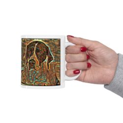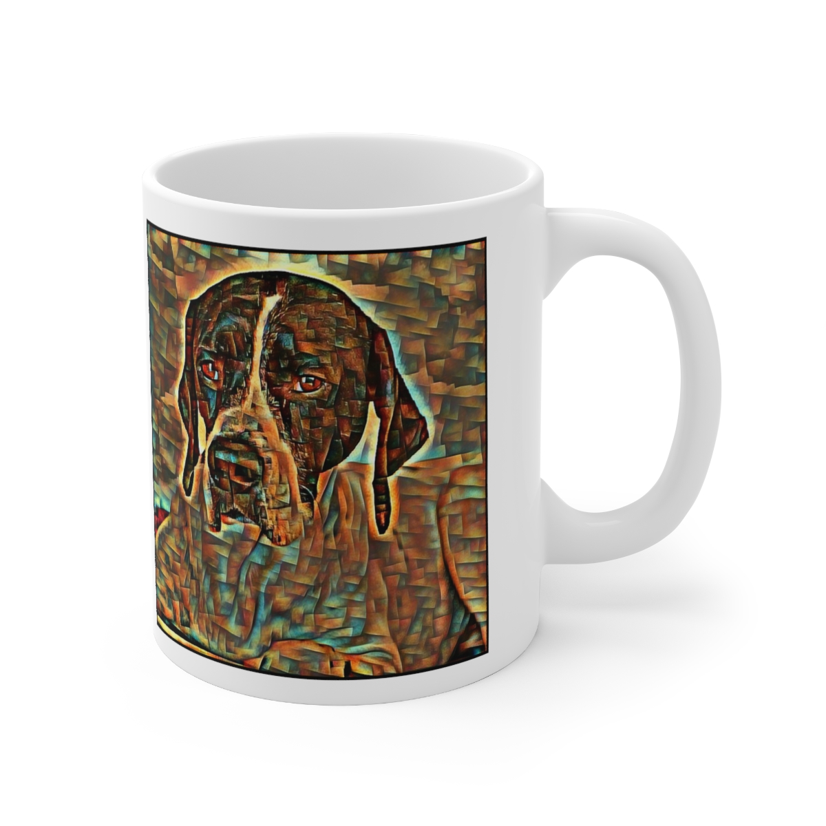 Keep cozy and warm with a nice cuppa, featuring the beloved Pointer dog breed stylized in our Coloromo Cool Cubist art on a ceramic mug. Lead and BPA-free, these durable mugs are also microwave & dishwasher-safe. Made of white, resilient ceramic in an 11-ounce size, this is the perfect gift for coffee, tea, and hot chocolate lovers.