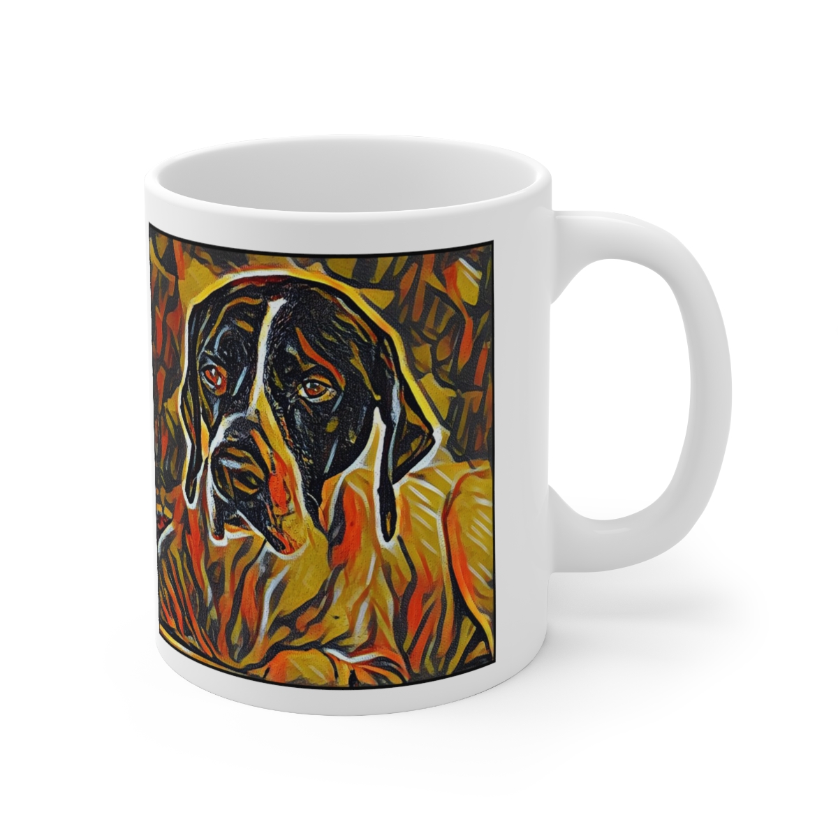 Keep cozy and warm with a nice cuppa, featuring the beloved Pointer dog breed stylized in our Coloromo Graffiti Haus art on a ceramic mug. Lead and BPA-free, these durable mugs are also microwave & dishwasher-safe. Made of white, resilient ceramic in an 11-ounce size, this is the perfect gift for coffee, tea, and hot chocolate lovers.